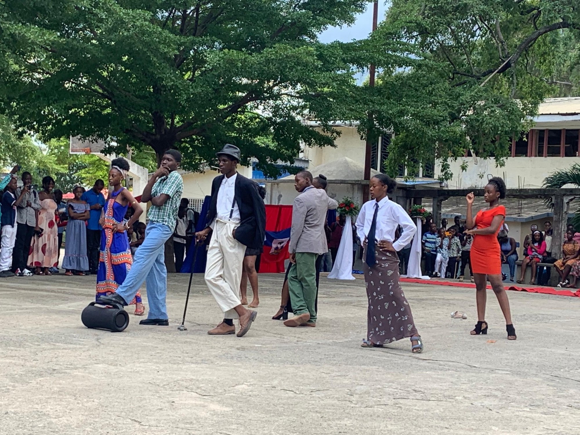 Dans l’après-midi, l’atmosphère s’est muée en un véritable espace d’expression artistique lorsque les classes ont investi le terrain de basket pour présenter une série de performances. Poèmes, mises en scène, gestes symboliques, compositions visuelles : chaque prestation traduisait une interprétation personnelle de Vertières. On y percevait une sincérité rare, nourrie par un sentiment de responsabilité collective et un attachement palpable aux valeurs héritées des combattants de 1803.